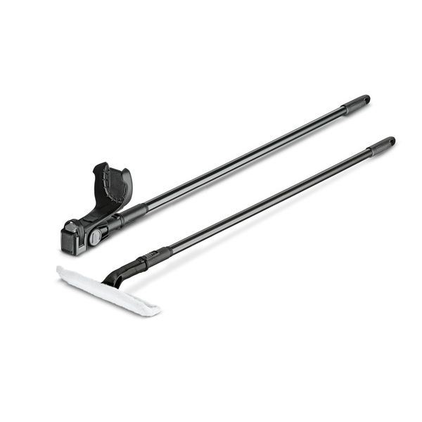 Setet består av två teleskop-förlängningsksaft. Ett för tvättmunstycket och den andra för fönstertvätten. Kan förlängas upp till 2 m. Tvättmunstycke med mikrofiberduk ingår.